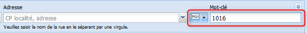 Vous pouvez également rechercher un numéro de client dans le champ de saisie de l'adresse. Si vous placez le signe « + » au début du mot-clé, la valeur est recherchée dans toutes les bases de données pour lesquelles la recherche rapide est activée et où des champs de recherche ont été définis.