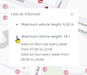 The maximum permissible vehicle weight. | t | Weight restriction |