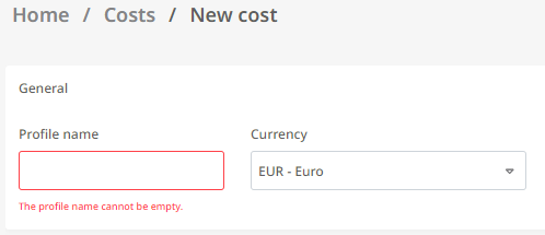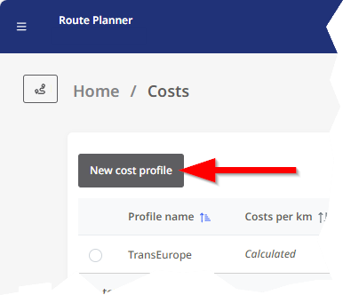 To create a new cost profile, click the <New cost profile> button in the “Cost” module. |