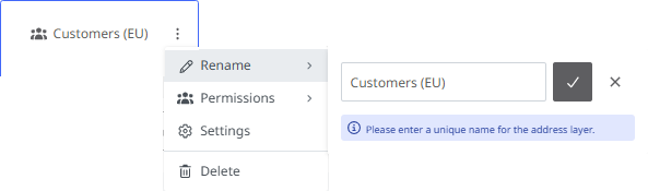 Click on the three dots and then on the <Rename> button. The input field for the name of the address layer is displayed.