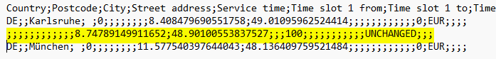 Attention: Way points are not listed in the stop list. This means that no detailed processing (service time, loading, etc.) is intended for via points. However, the via points are written to the CSV file as coordinates when the route is exported.
