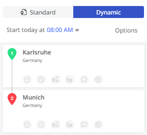 Note: The “Optimize sequence” function is available for both the “Standard” and “Dynamic” calculation modes. However, in “Dynamic” calculation mode, a standard vehicle must be used — a corresponding tooltip is displayed.