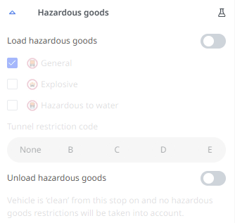 You can also set the tunnel code (according to ADR) for the hazardous goods. |